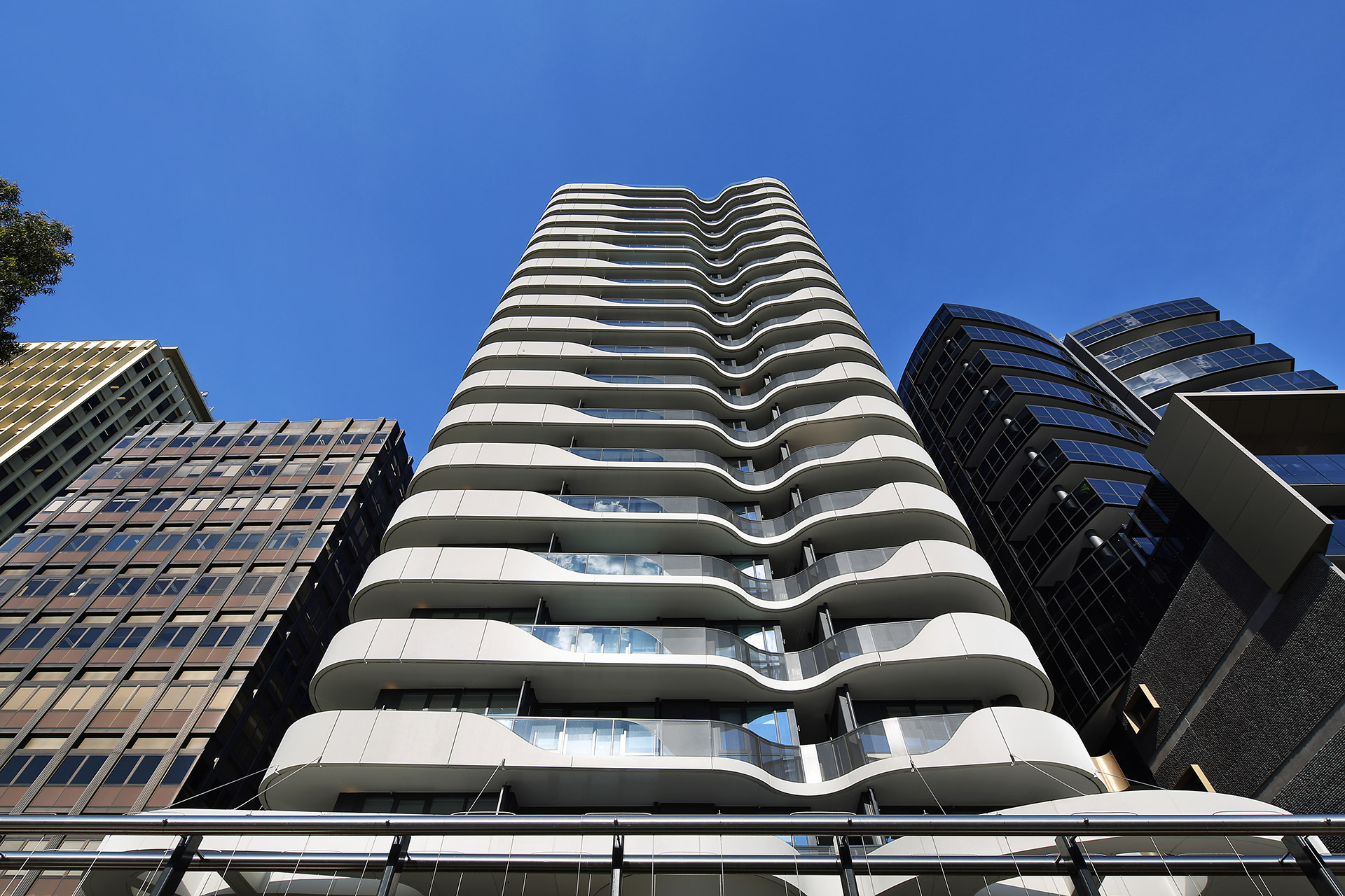 Across from Albert Park Lake and along the busy Queens Road in Melbourne, Australia, Queens Domain stands wrapped with a unique white balustrade creating a futuristic look. Doing without the heavy dead weight of concrete, the ShapeShell panel was an ideal match that offered advantages for the building as a whole such as a fast install program, fewer columns to support each floor, low post tensioned slabs and to add an extra bonus, the building foundations were able to support another floor giving the client an ideal advantage. Not using the tower crane to install the panels allowed the builder to finish months early.