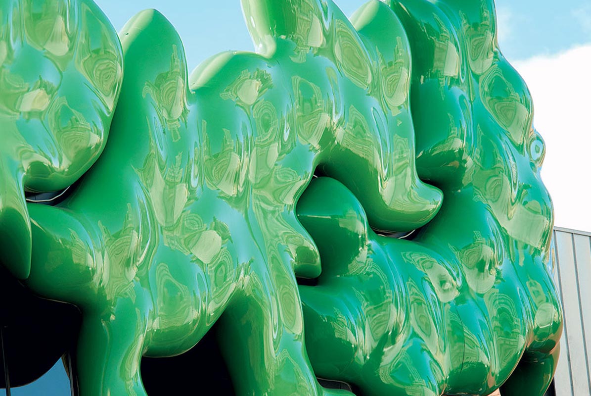 The Penrose Façade on top of RMIT University is often referred to as “The Green Brain” inspiring the students below to think outside of the norm. With no repetition of geometry anywhere in the façade this is ShapeShell “Freeform” at its best. Computer cut accuracy allowed complete unitisation of the façade off-site making installation quick and simple.